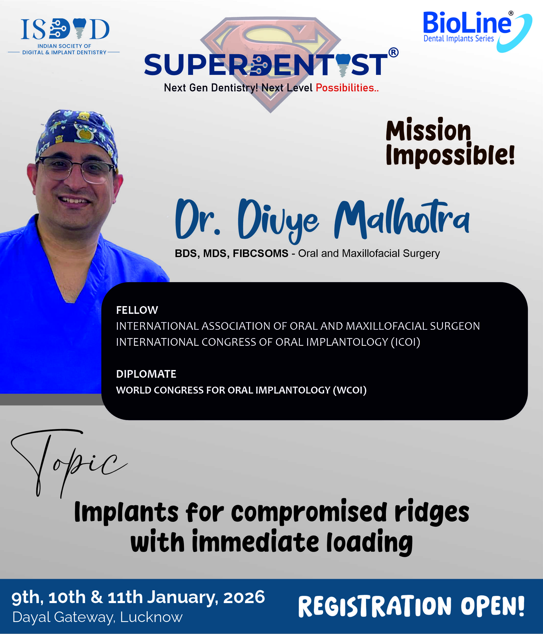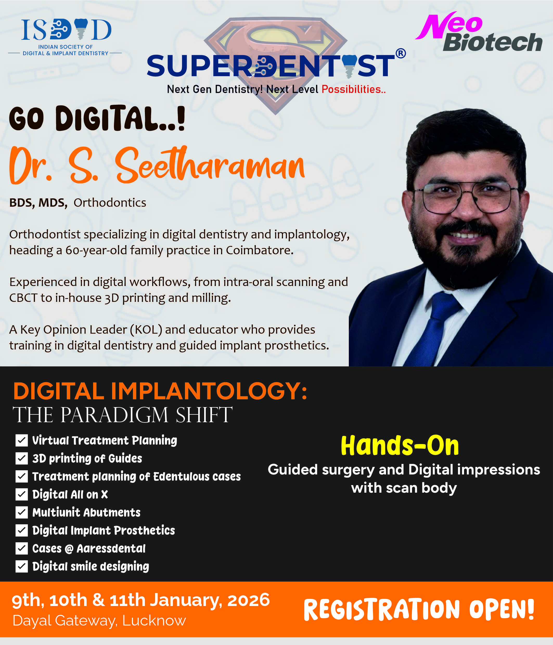 Join us for the most comprehensive Implants and Digital Dentistry Congress in India. SuperDentist 2026 brings together leading experts, innovative technologies, and cutting-edge research in the field of digital and implant dentistry.