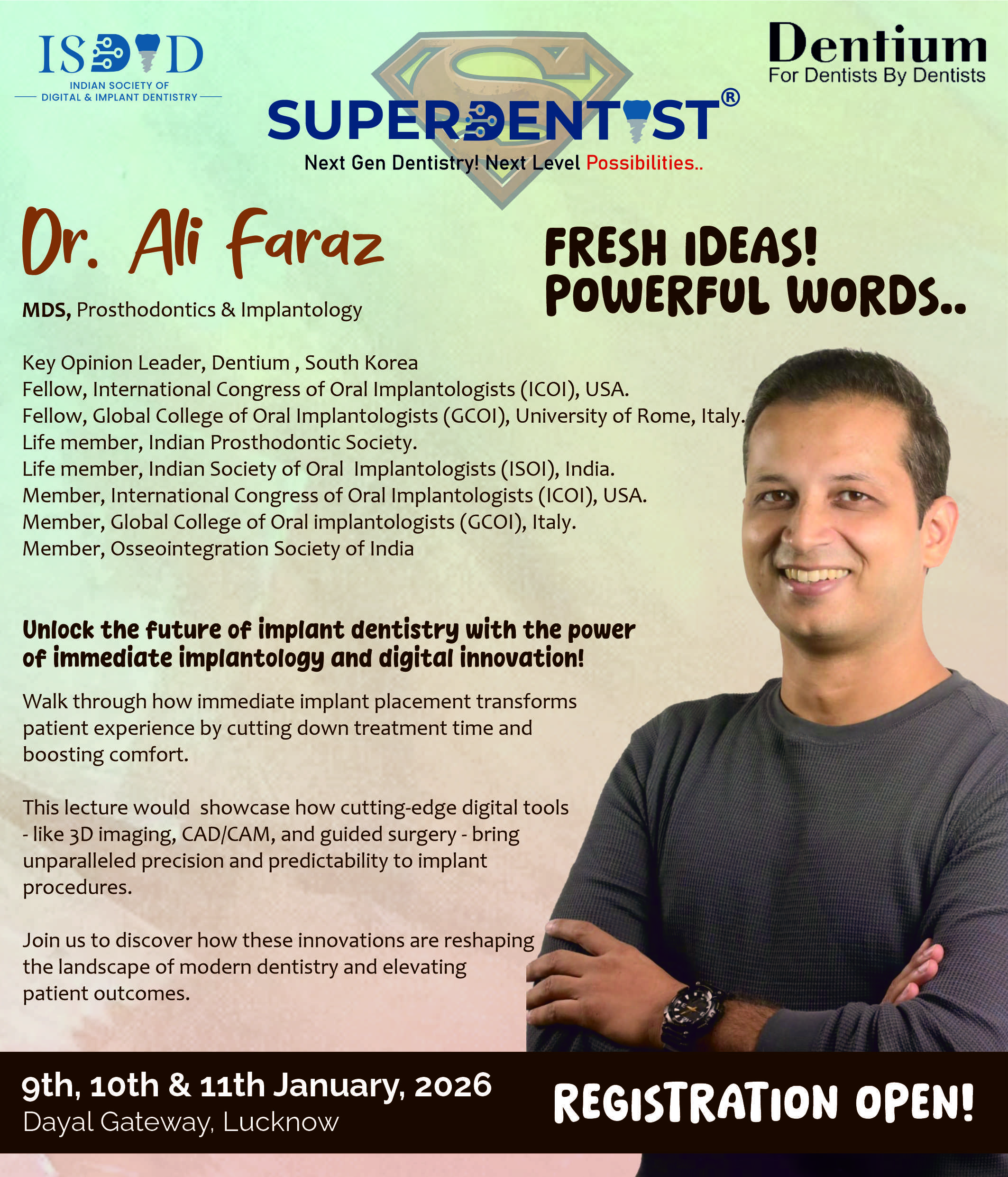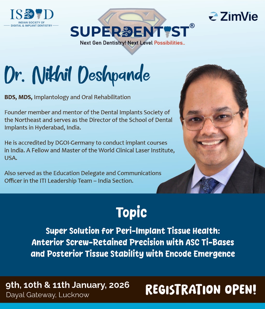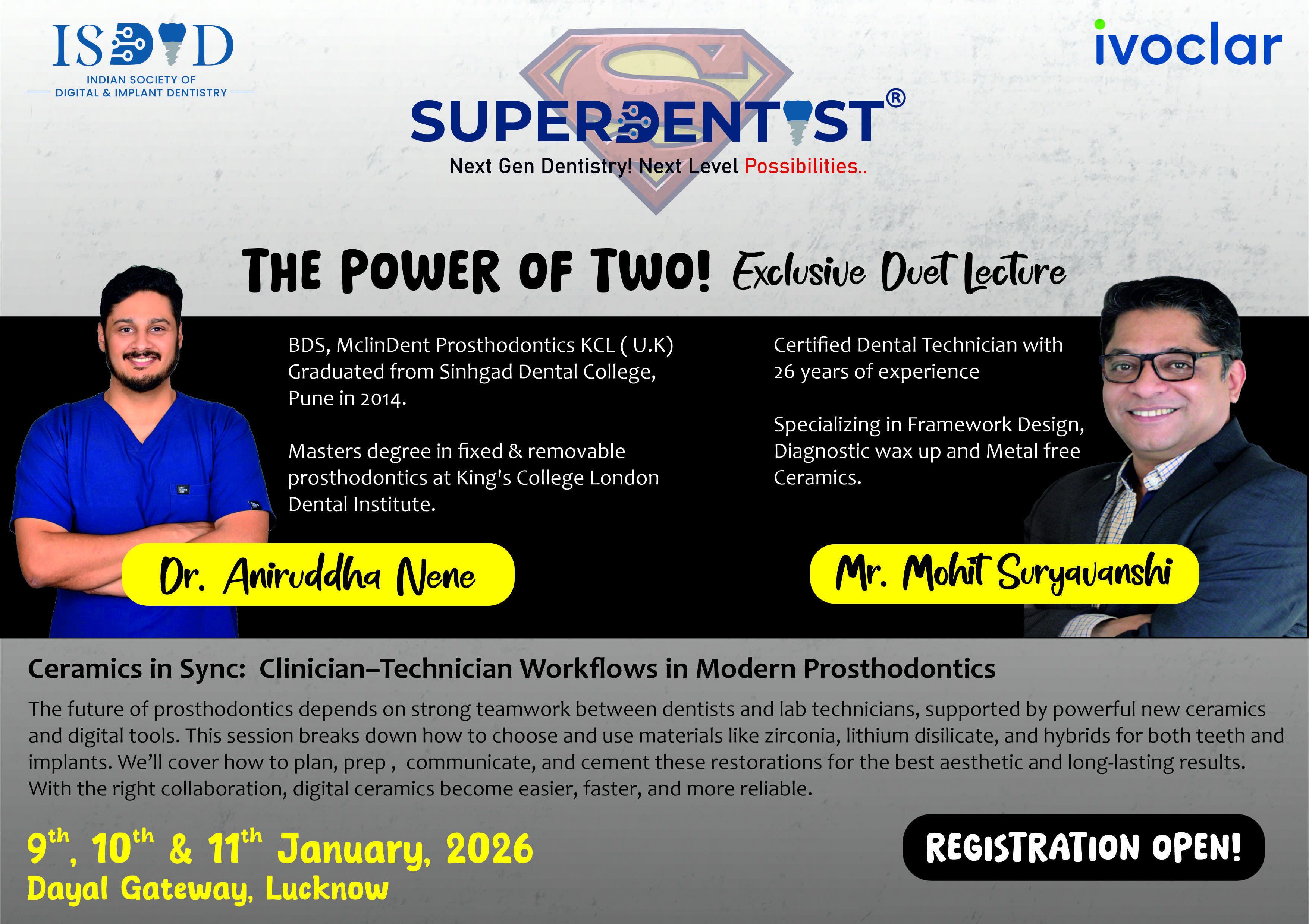 Join us for the most comprehensive Implants and Digital Dentistry Congress in India. SuperDentist 2026 brings together leading experts, innovative technologies, and cutting-edge research in the field of digital and implant dentistry.