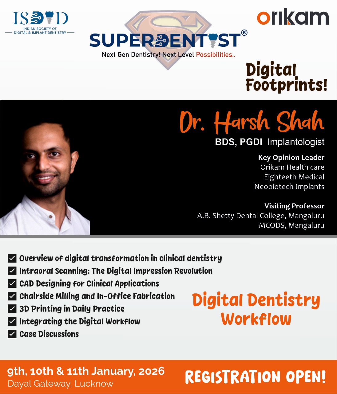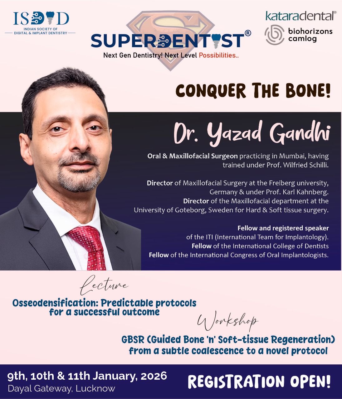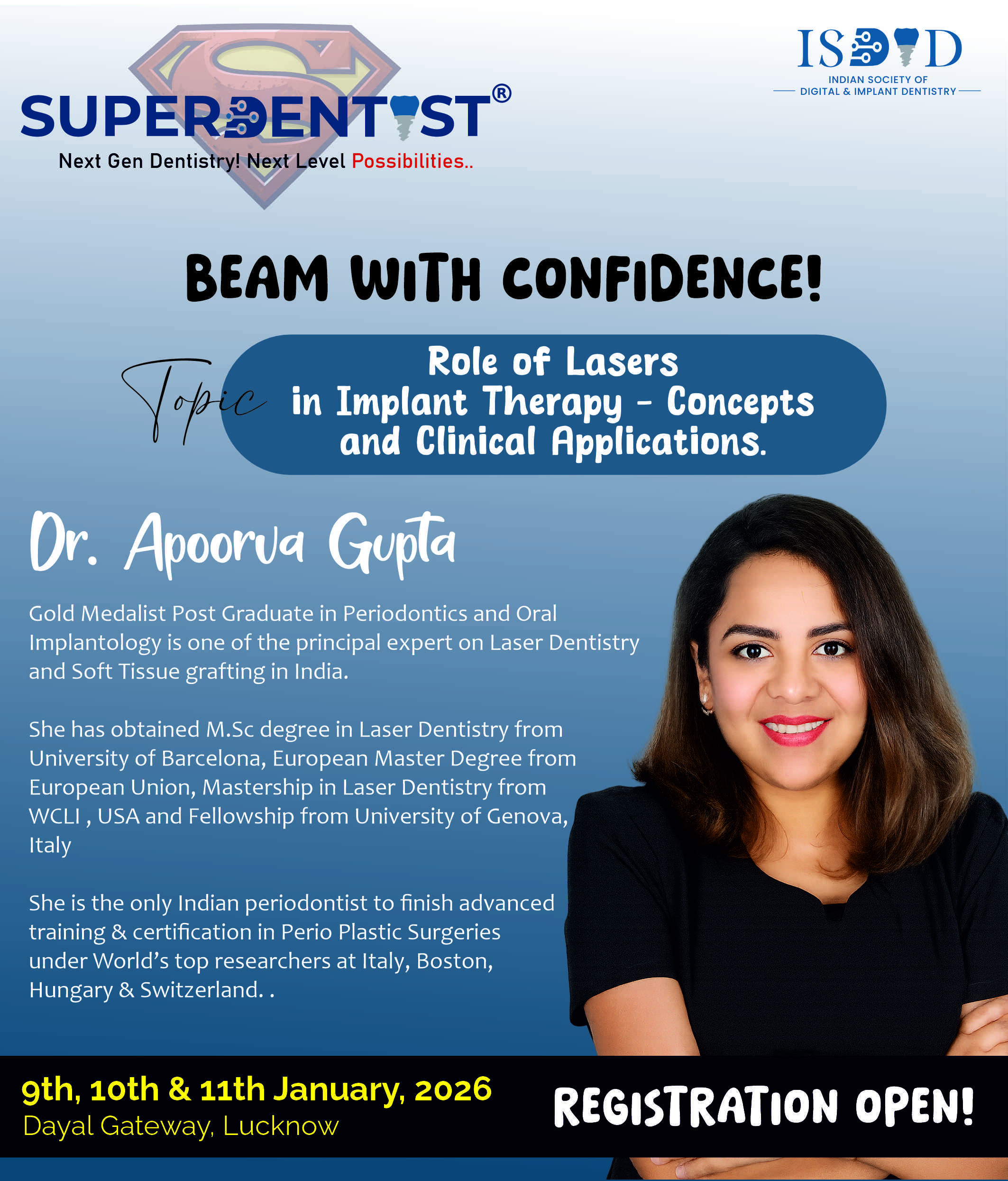 Join us for the most comprehensive Implants and Digital Dentistry Congress in India. SuperDentist 2026 brings together leading experts, innovative technologies, and cutting-edge research in the field of digital and implant dentistry.